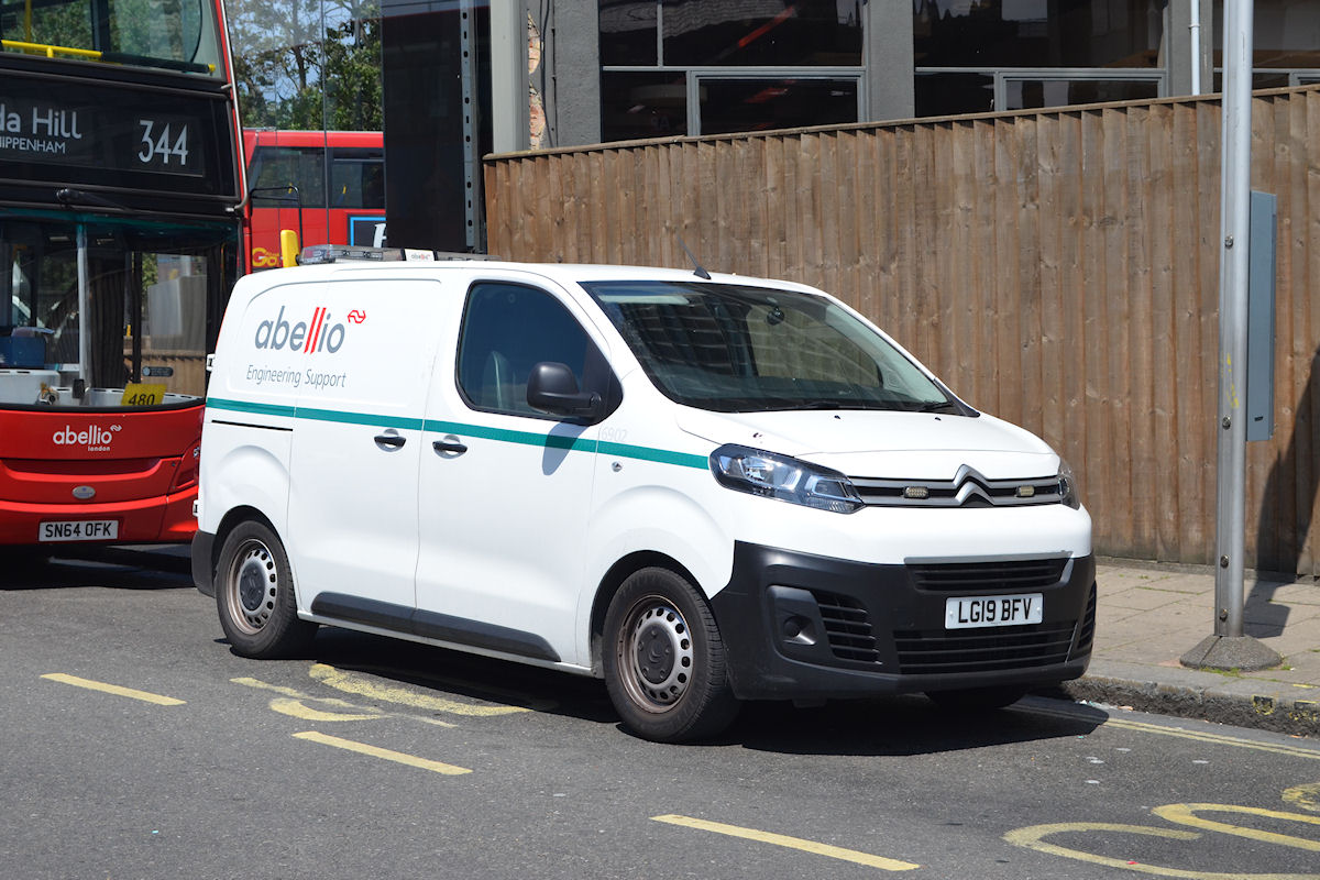Details: The Abellio engineering support fleet has been transformed over the past few years, with the delivery of several new (or nearly new) vans, particularly for use from the inner London garages. 6902 is a Citroen Dispatch van based at Battersea and photographed at the Putney Bridge bus stand on 3rd June 2021. The bus in the background had probably been working on route 414 rather than 344, since the latter serves neither Putney Bridge nor Maida Hill. Note the NS (Dutch Railways) logo beside the fleetname on both the bus and the van. It is interesting how much of the privatised UK transport industry has ended up being controlled by state-owned rail operators from other European countries. Imagine if things had gone differently and BR now ran buses in France and Germany! |
