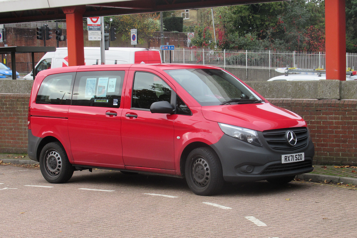 Details: Another new Mercedes Vito minibus for Go-Ahead London, this being Orpington's RX71SZO seen at Eltham Bus Station on 4th November 2021. At least 15 of these minibuses have been delivered over the past couple of months and there may be a few more that have yet to be reported. 22 were added in 2017/2018, with a further 21 in 2019. |