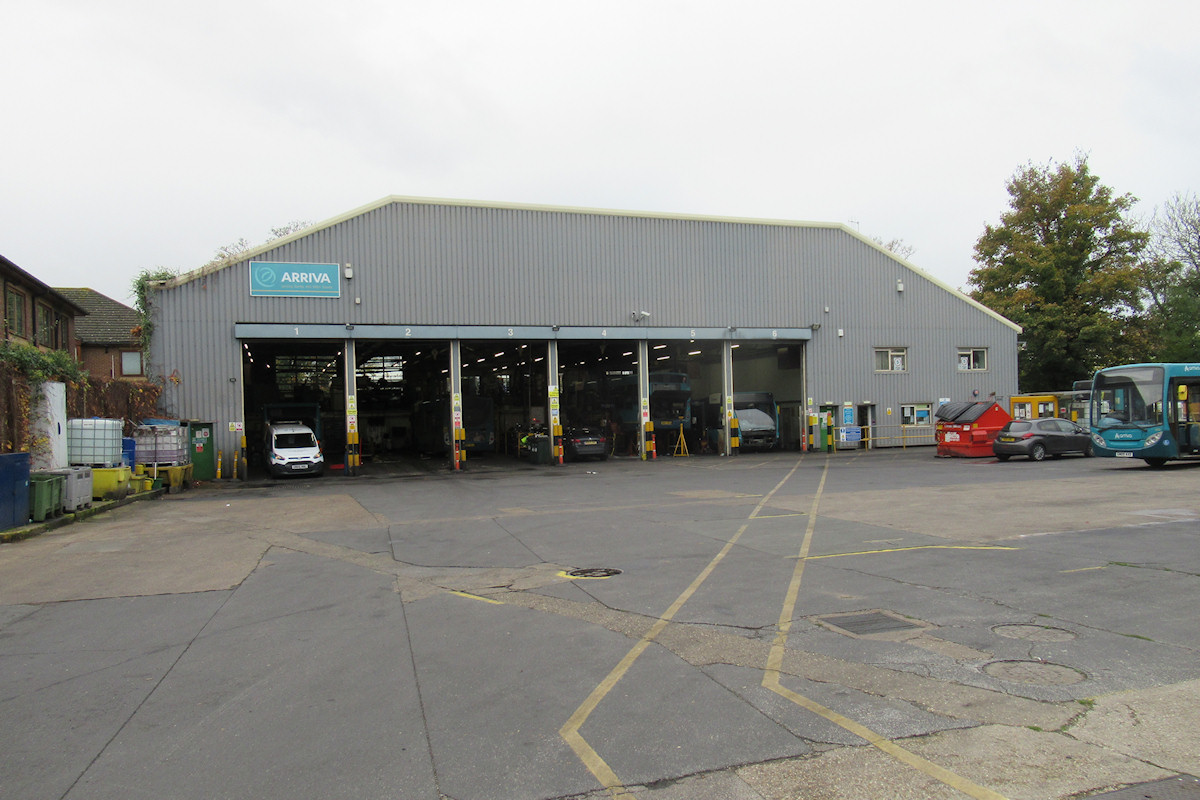 Details: Ray has been getting around a bit lately, and on 13th November 2021 he took this photo of Guildford Bus Garage. This location is in the news at present, with Arriva announcing that the base will close on December 17th this year. The site had in fact been sold to a property developer a few years ago, and leased back for continued use. Around 44 buses currently work from here and the location is not to be replaced, services instead being transferred to other operators such as Stagecoach and Hallmark. Guildford Garage is notable for being one of very few former LT premises still in use in the 'country' area, and also for the fact that it is a rather constricted site, squeezed between houses and the River Wey. The building seen here is believed to be based on the original structure. Built in 1932 (for what was then 'London General Country Services'), the main building lasted until about 2001 when it appears to have been reduced in length. The front half was demolished, leaving the rear half (containing the engineering bays) in place. The shortened building was extensively re-clad, giving it a more modern appearance. At about the same time, a single storey office block on the other side of the yard (out of shot on the right) was also demolished, the net result being a much larger yard for bus parking. To keep the SV in LTSV, I should mention that three service vehicles are in this photo, although one can barely be seen. On the left is Ford Transit Connect van GM66WWL, the resident engineer's van. Parked in the fourth bay of the garage is Peugeot 308 car MD69ONF in unmarked dark greyish blue (or it might be blueish grey). Similar (but black) MD69RNA was parked in front of this, and both cars are used as crew ferry vehicles. The car in the yard on the right is believed to be private. LCBS (London Country Bus Services) inherited 33 garages from London Transport upon its formation in 1970. Much has changed over the past 51 years and the majority of the garages have been closed and demolished. Just Northfleet and Harlow have remained in continuous use, while Swanley is still a bus garage but now with a new operator. Garston closed in 2018 and demolition is reported to now be going ahead. Do any others survive? |