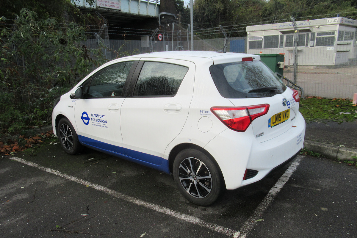 Details: Ray paid another visit to Acton Works on 11th December 2021 and, although there was very little in the way of new vehicles, some interest was provided by the presence of several TfL Toyota Yaris cars. Two batches of seven each had been delivered in spring 2019, the first seven curiously being given LUL white/blue/red livery before being changed to TfL white/blue before leaving the works. Ray had photographed most of the cars when they were first delivered to Acton, but I chose not to use all of these photos and instead to wait for photos of them in service. However, the cars were to prove remarkably elusive. Of the first seven (8836T to 8842T), 8836T was photographed in Barking in June 2021, 8840T was noted twice in south east London in July 2021 while 8842T was seen on LUL night work on a couple of occasions. Of the others, nothing was heard. The second batch were equally rare, with just a handful of sightings, mostly suggesting use by LUL. I had speculated that the cars would be for TfL Streets and/or Infrastructure, but perhaps they were for use by LUL. The use of generic TfL white/blue livery on cars could be a new policy, as evidenced by the allocation of white/blue Nissan Leaf cars 9100N to 9103N to LBSL work. As for the reason for their return to Acton Works in late-2021, it is believed to have been in connection with the fitting of updated tracking equipment. As they may not be seen again for a long time, I am showing four photos of these cars today! First up is 8838T from the first batch, seen in the front car park at Acton. This particular car was not actually seen in LUL livery but it is likely to have gained it then lost it, as with the others of the batch. |