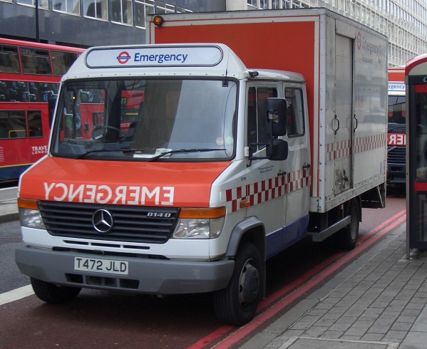 Details: 2572M (T472JLD) is a vehicle often seen in Central London, being a Mercedes-Benz Vario 814D Box Truck allocated to the LUL Emergency Response Unit depot at Camden. On 14th July 2004 it was found parked on York Road, Waterloo. |