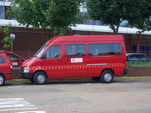 Details: This Volkswagen LT35 minibus (RJ04WOB) parked at Eltham Bus Station on 24th July 2004 was allocated number 5613VW but did not carry it externally. |
