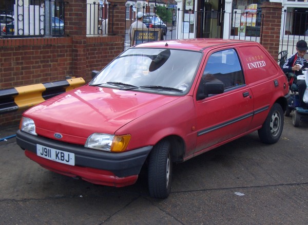 Details: London United uses Ford Fiesta vans in the crew ferry role. An example seen outside Hounslow bus garage on 21st August 2004 was J911KBJ. This carried the fleetnumber HH3 on the offside, referring to the operating base at Hounslow Heath. |