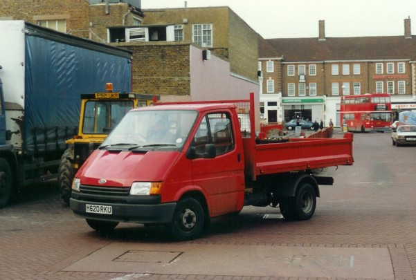 Details: This anonymous vehicle seen at Edgware Bus Station on 13th January 1992 was in fact 4157F (H620RKU), a Ford Transit 190 Tipper. It had reportedly entered the fleet at the start of that month, quite some time after most other H-prefixed vehicles. It was also unusual for being a tipper allocated to a bus unit, Edgware being its home base. The gap between the rear wheelarch and the bodywork does suggest a tipping body and perhaps there was a particular need for such a vehicle at that time. It left the fleet in April 1995. |