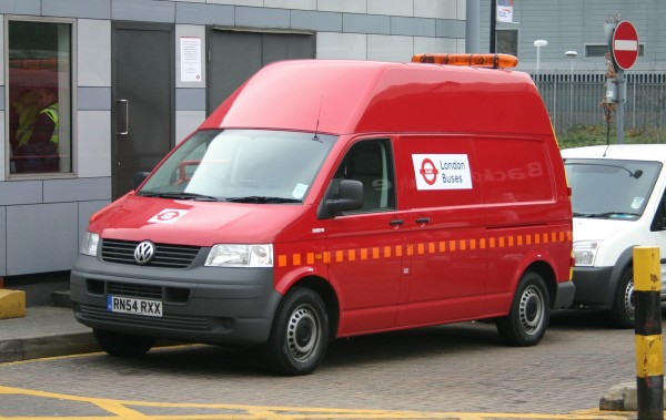 Details: At the end of 2004 Volkswagen appeared to be returning to favour as a supplier of service vehicles. First came four LT35 minibuses, followed by a quartet of Golf estate cars. Seen at Stratford Bus Station in late January 2005 was another new type, which appears to be based on the latest Transporter van but with a very high roof. Numbered 5669VW (RN54RXX), it carried standard London Buses livery. |