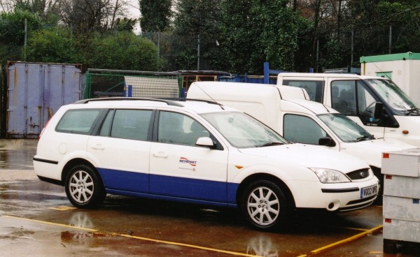 Details: Estate cars have come a long way since the early Ford Escorts! Looking particularly sleek in the rain at Ealing Common in April 2005 is Ford Mondeo 5338F (VO02XPD), keeping company with a Ford Courier van and Transit dropside. Similar cars in the same registration series have been noted as un-numbered pool cars (such as VO02XNN). |
