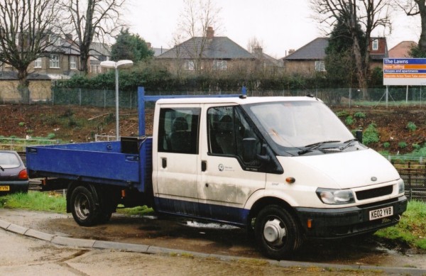 Details: Visitors to the Acton Museum Depot will recognise this location and may have even queued past it! On a damp day in April 2005 Ford Transit dropside 5344F (KE02YVB) was parked at the top of the ramp. This 90 T350 model new in May 2002 has a crew cab but no tail lift, although it has been semi-permanently fitted with a tool locker in the loadspace. |
