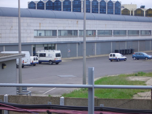 Details: Stratford Bus Station is home to a good number of service vehicles. However, there are two other locations nearby that also have vehicles allocated, although neither is anywhere like as accessible. Stratford station has a yard off Gibbins Road. The view above was taken from the Docklands Light Railway platform and shows three of the vans present. From left to right they are Ford Escort 5285F (KF51GKL), Ford Transit crew van 5603F (KL04ZCE) and Ford Escort 5286F (KF51GKD). The jubilee line platforms are behind the buildings. The other location is Stratford Market jubilee line depot, and up to ten SVs are often visible from passing trains. However, the plethora of security and noise abatement fences make photography impossible. |