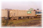 The wagons themselves were fairly conventional bogie boxes, with heavy vertical ribbing and top capping, a large square door for cleaning access at the left hand end, and a steel loop ladder at the right. They were painted silver with a large side board spanning several body ribs. On this was the MRL logo on a green background, and titling on an orange band. As with earlier aggregates wagons, automatic couplers were to be used within sets and the intital order was split into two rakes of ten. All wagons were assigned TOPS code JNA-A and the batch was numbered NACO3900 to 3919 with the outer wagons being NACO3900/3909/3910 and 3919.